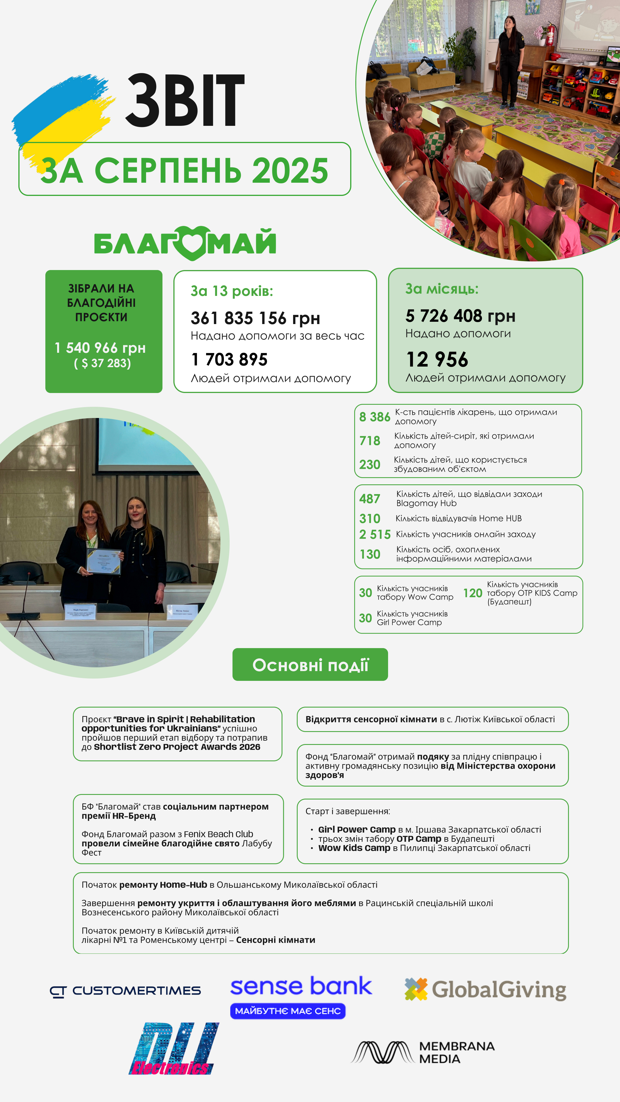 Фонд "Благомай" - український благодійний фонд, який вже 12+ років покращує дитинство дітей з більш ніж 100 дитячих будинків України.